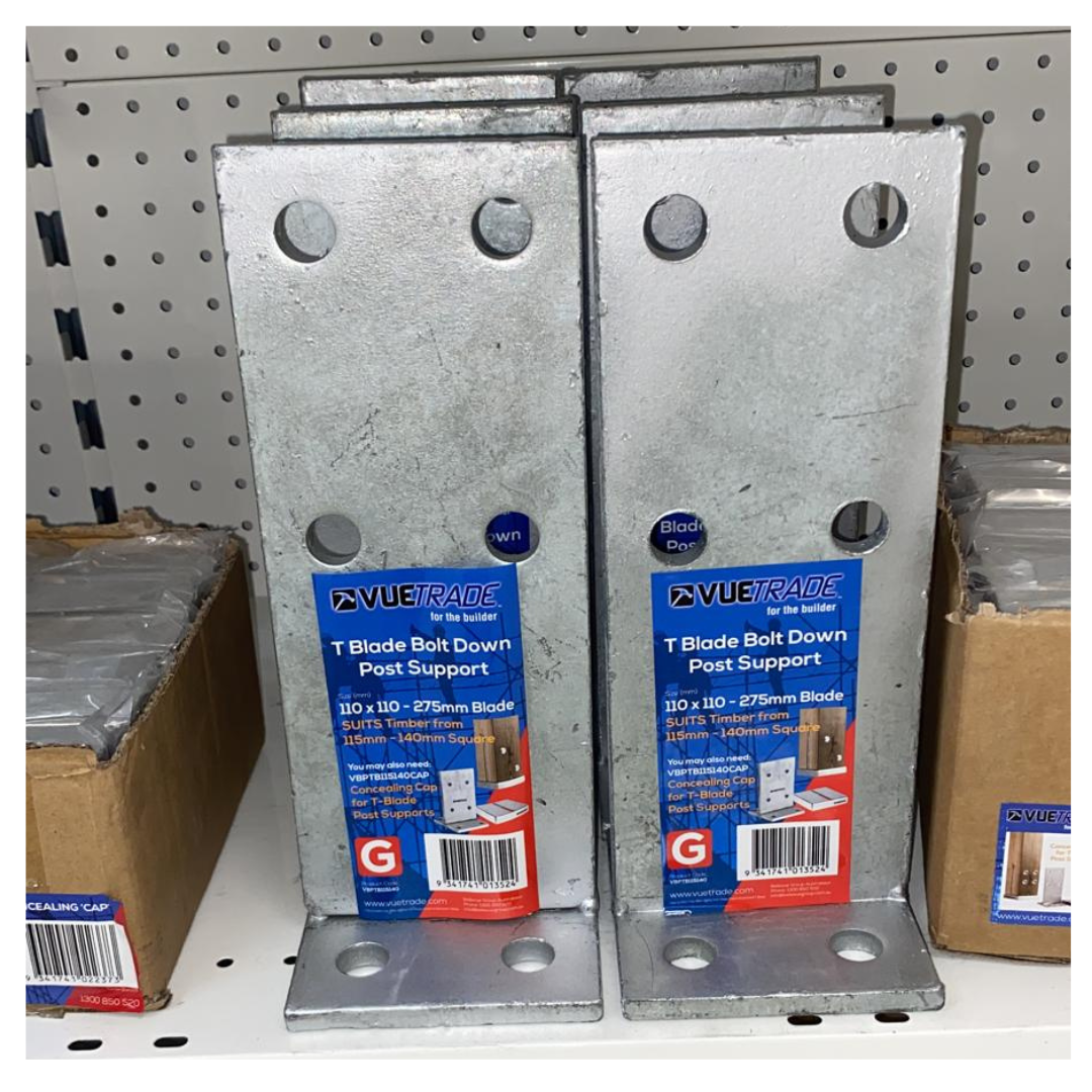 VUETRADE T-Blade Post Supports are brackets ideal for the concealed fixing of large decorative timber posts by bolting onto concrete. VUETRADE T-Blade & Cap System is a simple and efficient way of neatly installing beautiful timber posts. The system works with a combination of the three innovative VUETRADE products, T-Blades, T-Blade Caps, and VUEBOLTS.